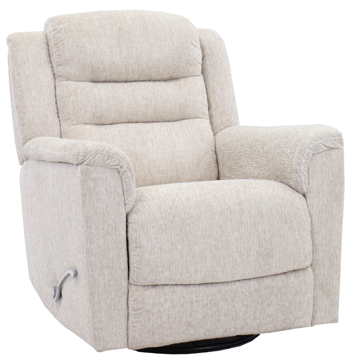 This swivel glider recliner by Man Wah features a handle on the side for reclining positions. It is in the Calgary Birch cover.Read More