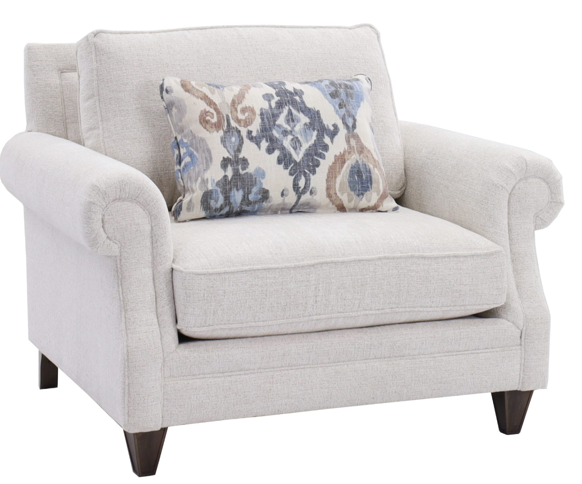 This customizable chair and a half is in the Giggles Vanilla fabric and comes with an accent kidney pillow. This chair and a half also has a driftwood finish on the legs.Read More