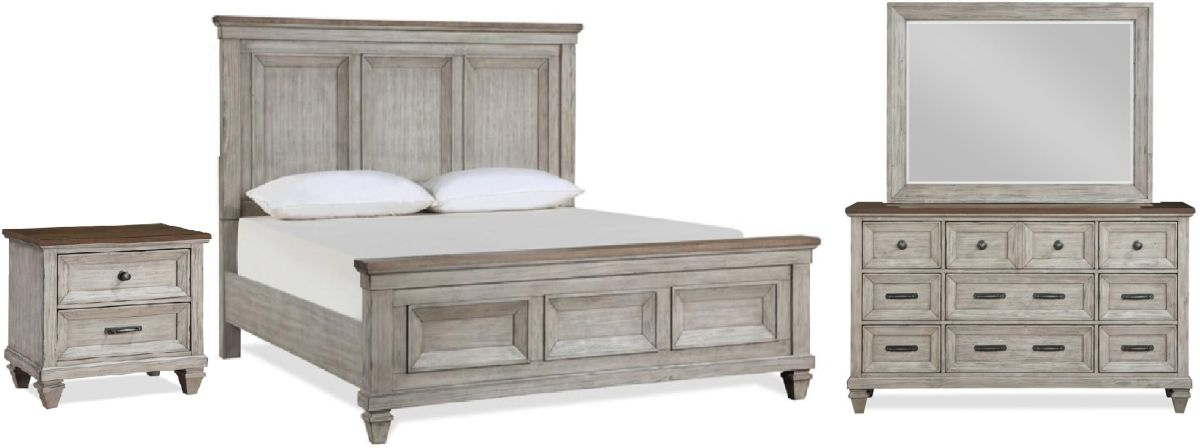 The Mariana Bed by New Classic Furniture features solids with veneers, and comes in a Vintage Crème finish.