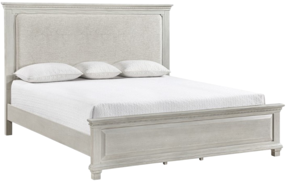 Elegant Design: The bed features a raised panel foot board, plushly padded headboard, dentil moldings and nicely shaped crown moldings lending a sophisticated appeal