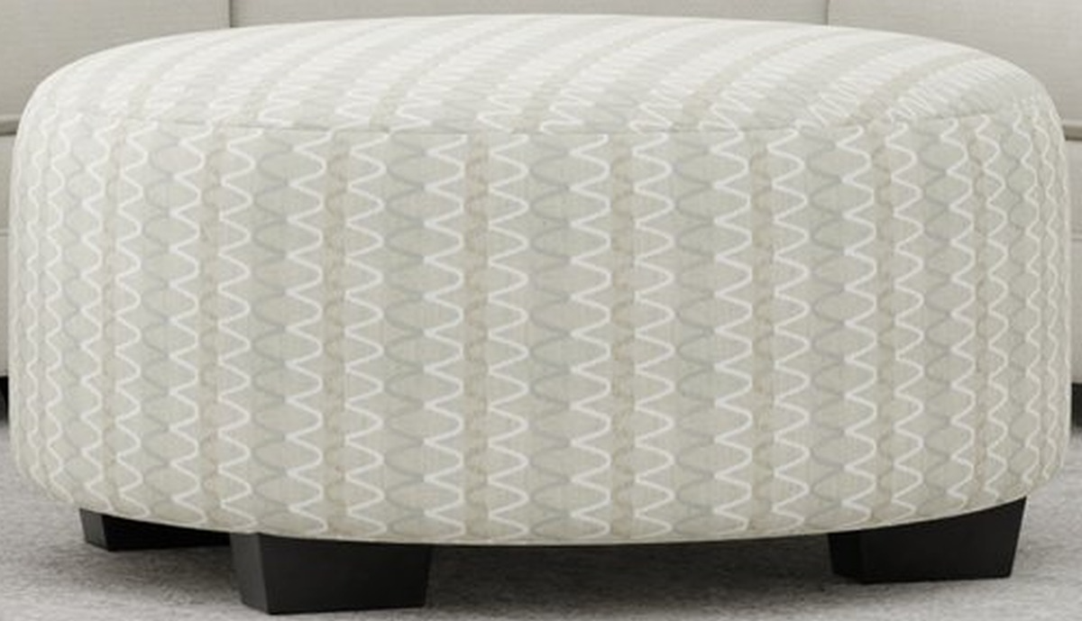 This Ottoman by Peak Living features patterned fabric, exposed feet, and cushioned seat.Read More