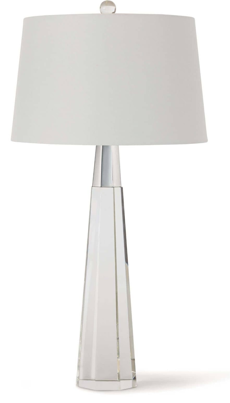 Nickel and crystal harmonize in minimalist tapered lines of the Carli crystal table lamp. The lamp gently refracts the light from its tapered geometric column, which is capped with polished nickel hardware for a modern statement.Read More