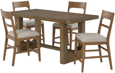 Define your space with inviting warmth and functional design. The Cabalynn set anchors your dining area with a counter-height rectangular table and six upholstered stools—perfect for family meals or gathering with friends.Read More