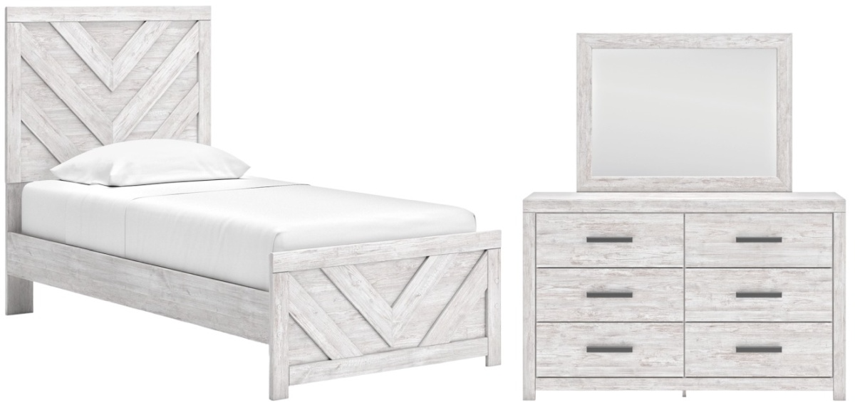 This Cayboni bedroom mirror in whitewash finish is made with engineered wood (MDF/particleboard/plywood) and decorative laminate. Pairs with other items in the series to make a dresser and mirror kit.