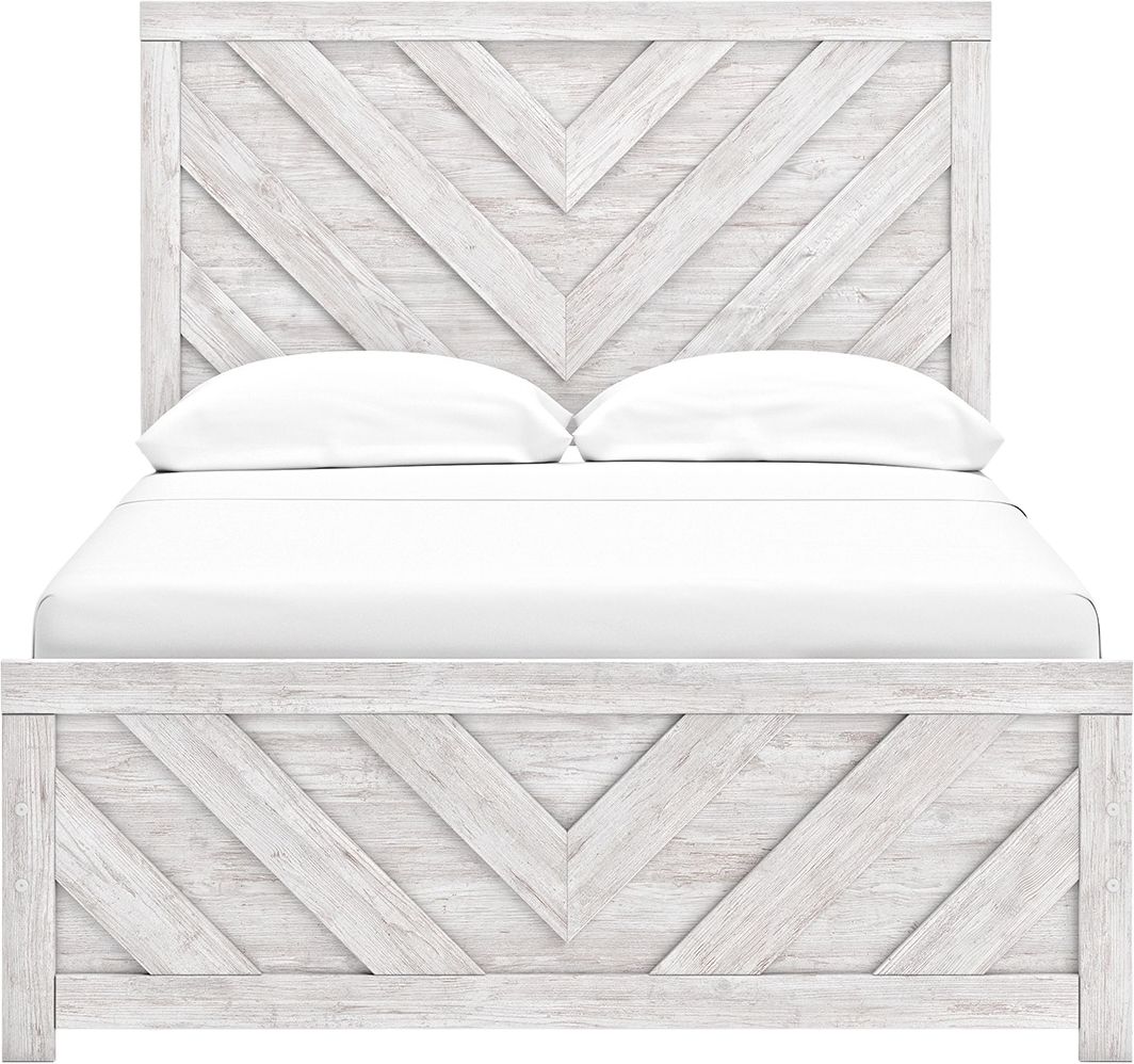 Charmingly designed, this queen panel bed embraces the aesthetics of countryside living and repurposes them for modern settings. Its whitewash paint, replicating the wear and tear of time, appeals to your love of vintage character. And a chic chevron pattern on the headboard and footboard keeps your bedroom effortlessly on trend.Read More