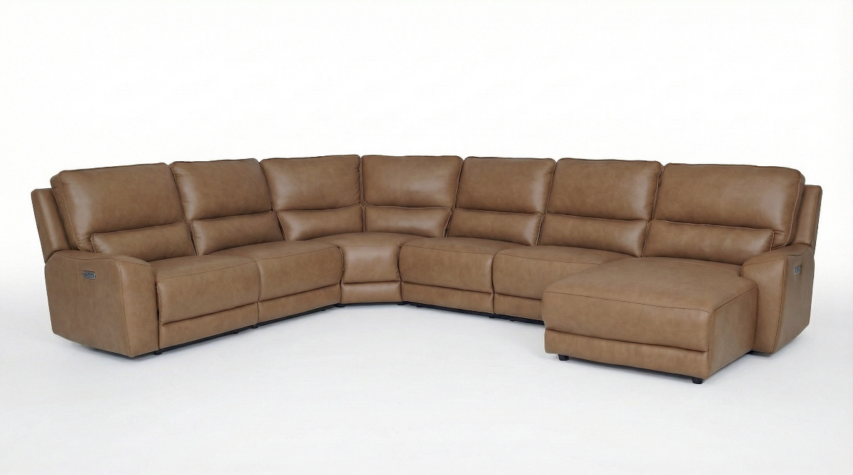 Live and lounge luxuriously. This power reclining sectional with chaise brings an ultra-stylish flair to your home’s central hub. Its seating area is wrapped in top grain leather in a rich caramel color, giving you a trend-right look made all the better with high-quality materials.Read More