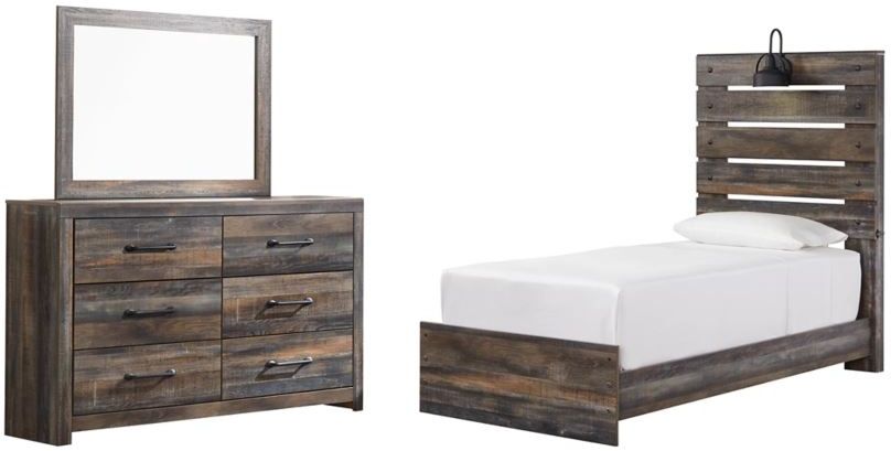 Includes bed (headboard, footboard and rails) and dresser with mirror