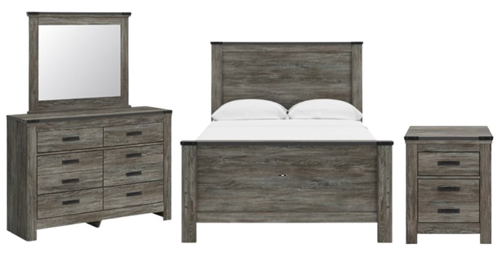 The Frandern series by Signature Design by Ashley offers a casually refined bedroom collection with a modern industrial edge. In a rustic warm gray palette, this bedroom set delivers a versatile and stylish solution that blends texture, utility, and subtle sophistication.Read More