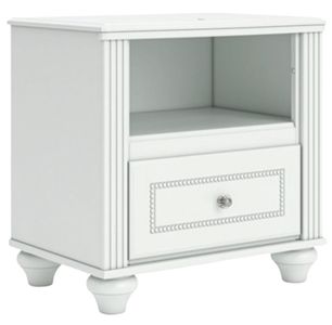Fit for a princess. This nightstand’s crisp matte white finish pairs with charming ornate beading details and bun feet—perfect for your girly girl. Multicolored LED lighting and built-in USB charging are the crowning touches to make your little one feel like royalty.Read More