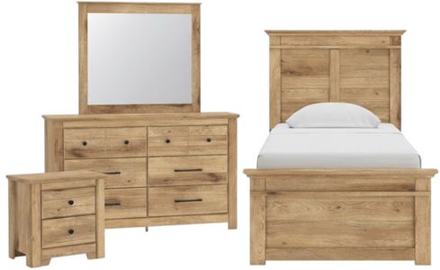 Looking to create a bedroom that feels airy and beautifully put together? This casually comfy twin panel bed is your perfect solution. Its clean lines, replicated oak grain and on-trend natural finish exude a charming cottage-inspired feel that brightens your restful retreat.