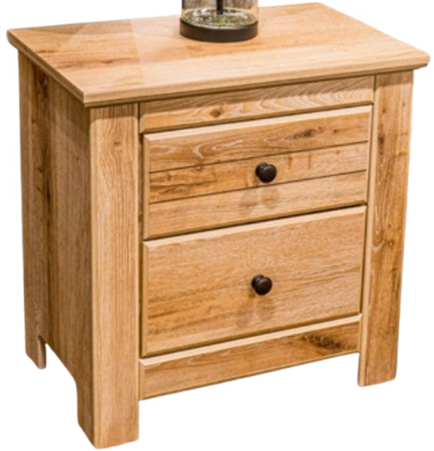 The Makidern nightstand brings subtle warmth and function to your bedroom. Its tan finish—highlighted with a gentle whitewash over replicated wood grain—provides a touch of charm. Featuring two practical drawers accented with dark bronze hardware.Read More