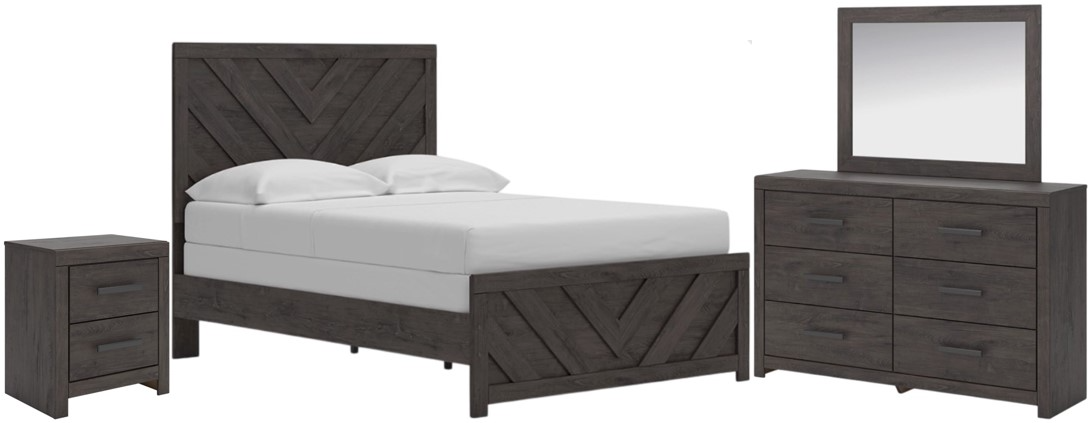Designed with everyday style in mind, this king panel bed is a simply chic approach to modern living. A dark charcoal finish blends black and brown undertones to create a versatile look that effortlessly pairs with your existing pieces. And for an extra dash of trend-right style, the headboard is dressed in a playful chevron pattern.