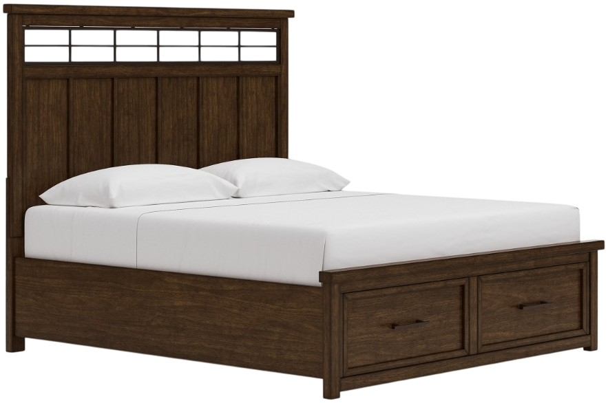 Style, simplicity and charm are hallmarks of this king panel storage bed. Created with casual spaces in mind, it has the versatility to suit styles from craftsman to modern farmhouse. The rich brown finish aligns with your refined-meets-relaxed approach to everyday style.Read More
