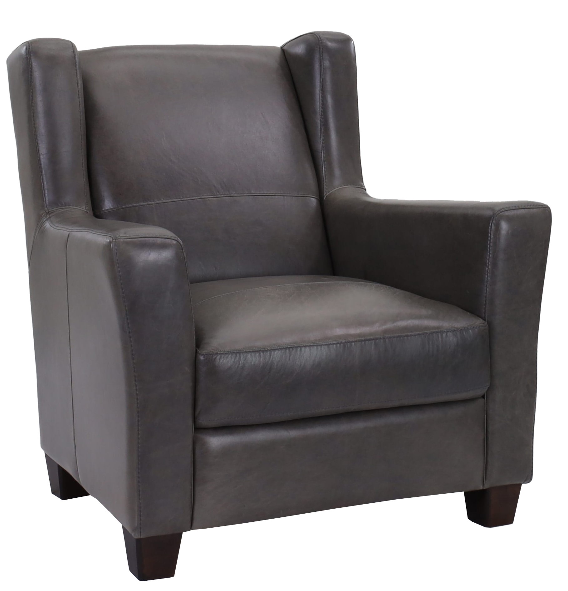 This wing chair from Soft Line is covered in the 10808 Splendor Dark Grey leather.