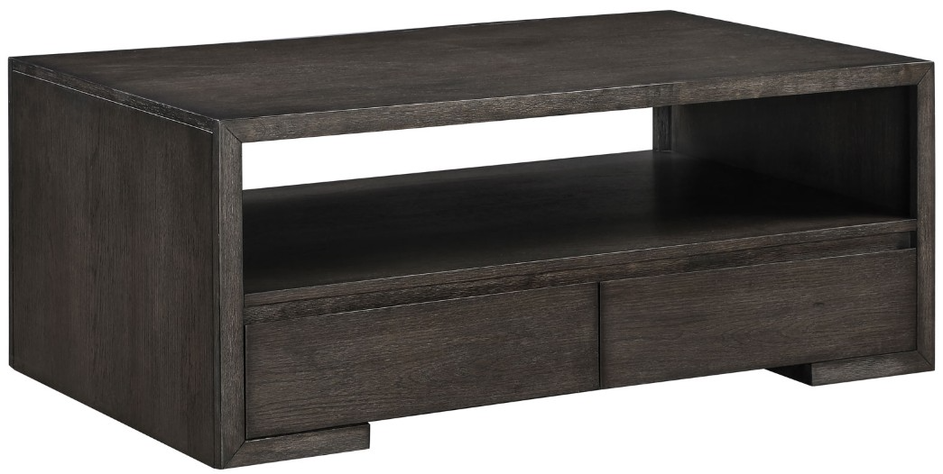 The 48" Evan coffee table features a clean, minimalist design with a walnut finish over oak veneers. Its hardware-free exterior and spacious bottom shelf provide organized space, while two drawers offer a great place for additional organization. With its modern style and ample surface areaRead More