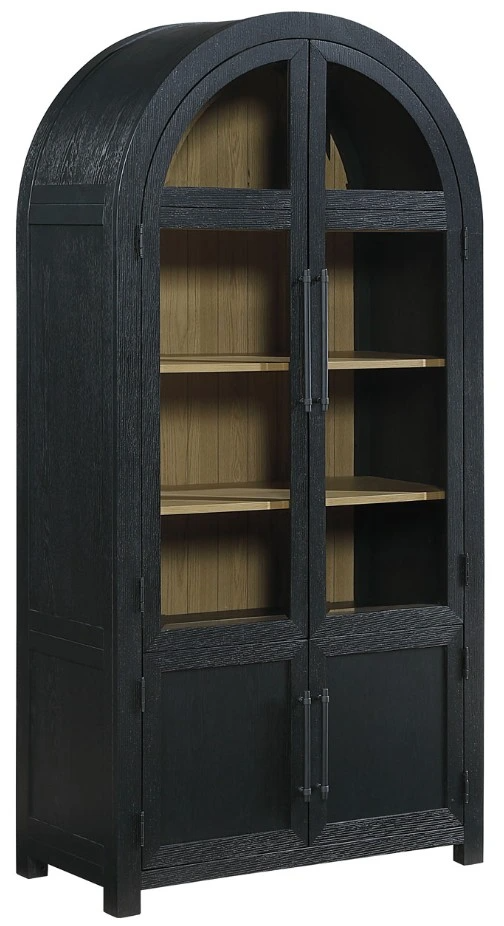 The Magnolia Curio, in black with a weathered sand interior, adds elegance to any room. Its domed top and upper dual glass doors create a stunning display for china, collectibles, or décor, while lower dual doors provide hidden storage. The rich black finish serves as a striking modern accent, whether paired with the Magnolia collection or used alone.Read More
