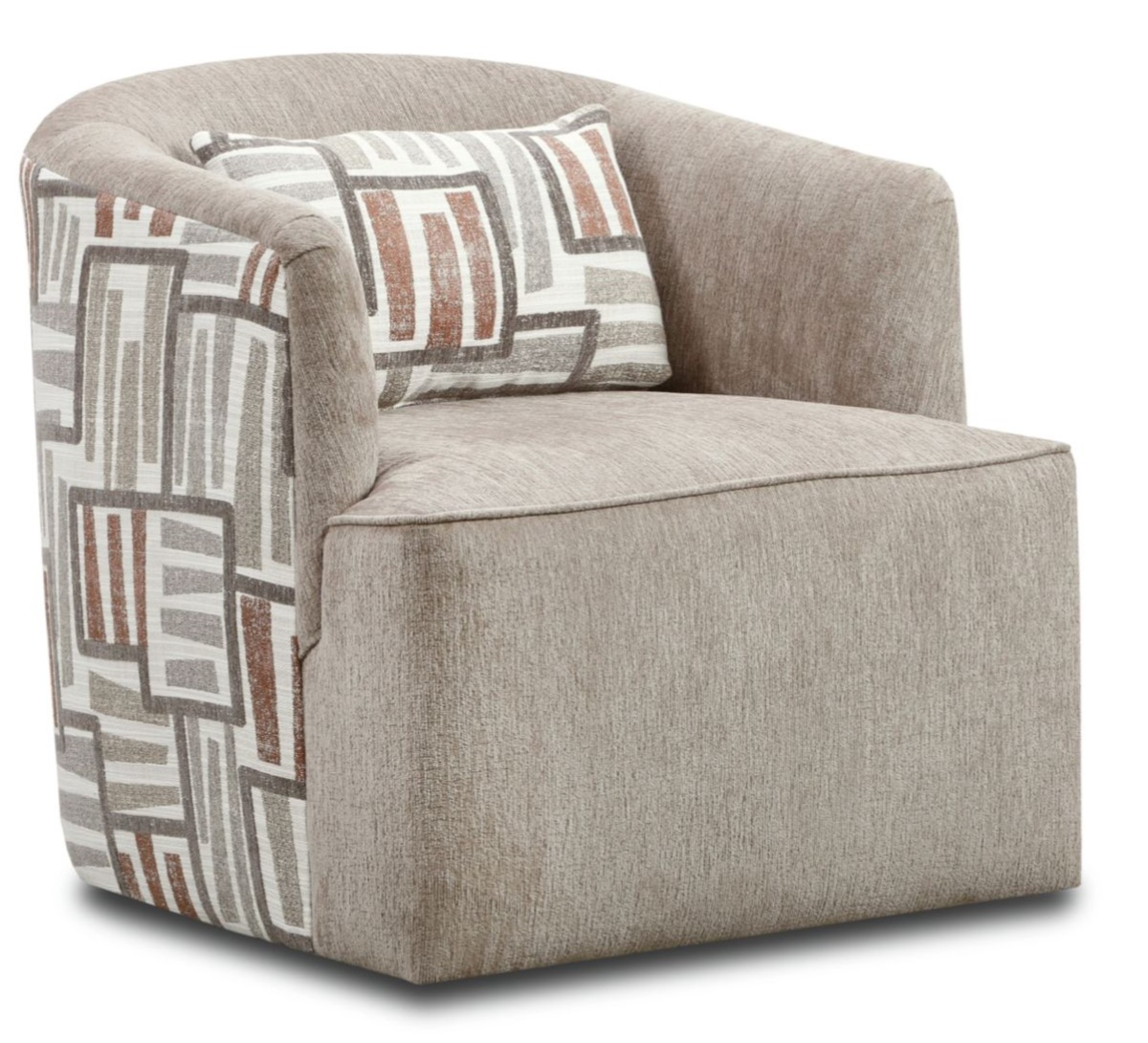 Style Line Dunbar Swivel Chair features an accent fabric on the outside of the chair, coordinating with the kidney pillow. Pair this swivel chair with the ottoman and 6 piece sectional in this collection.Read More