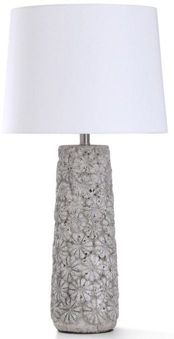 This Stylecraft Gray/White Table Lamp features a concrete body with a flower motif.Read More