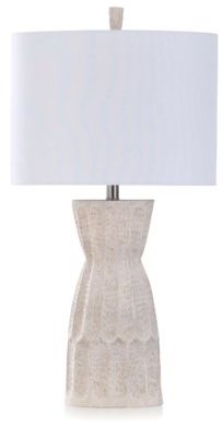 The Brie Ivory Table Lamp features a molded and hammered texture body with a white drum lampshade.Read More