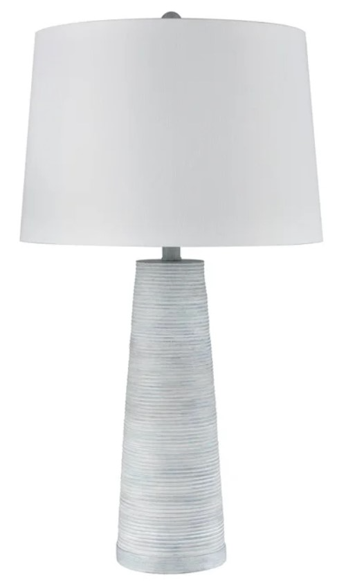 Elevate your room design with this table lamp from Stylecraft. Shown in skylight wash base finish with silver shade. This lamp features a polyester shade and will surely make a statement in any room design.Read More