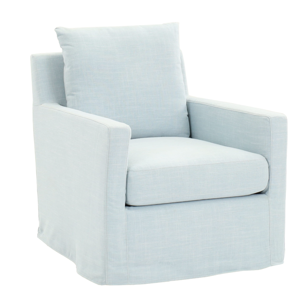 Relax in comfort with this stylish swivel glider chair, upholstered in a soft light blue linen-blend fabric. Designed with clean lines, supportive armrests, and plush seat and back cushions, it offers both modern style and everyday comfort. The smooth swivel and gentle gliding motion make it perfect for living rooms, nurseries, or cozy reading corners.Read More