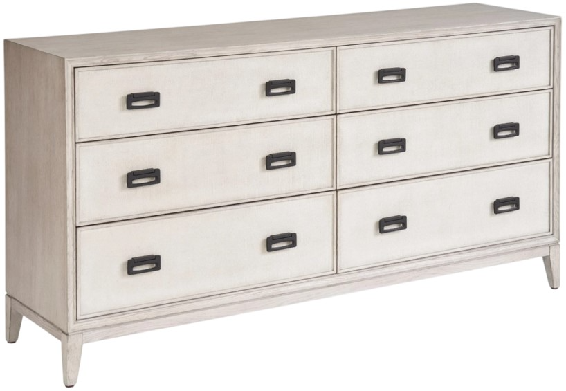 The Estelle Dresser, adorned in the serene Rolling Fog finish, elegantly houses six drawers with faux linen texture fronts, offering a sophisticated storage solution that echoes the refined tranquility of the Coalesce collection.Read More