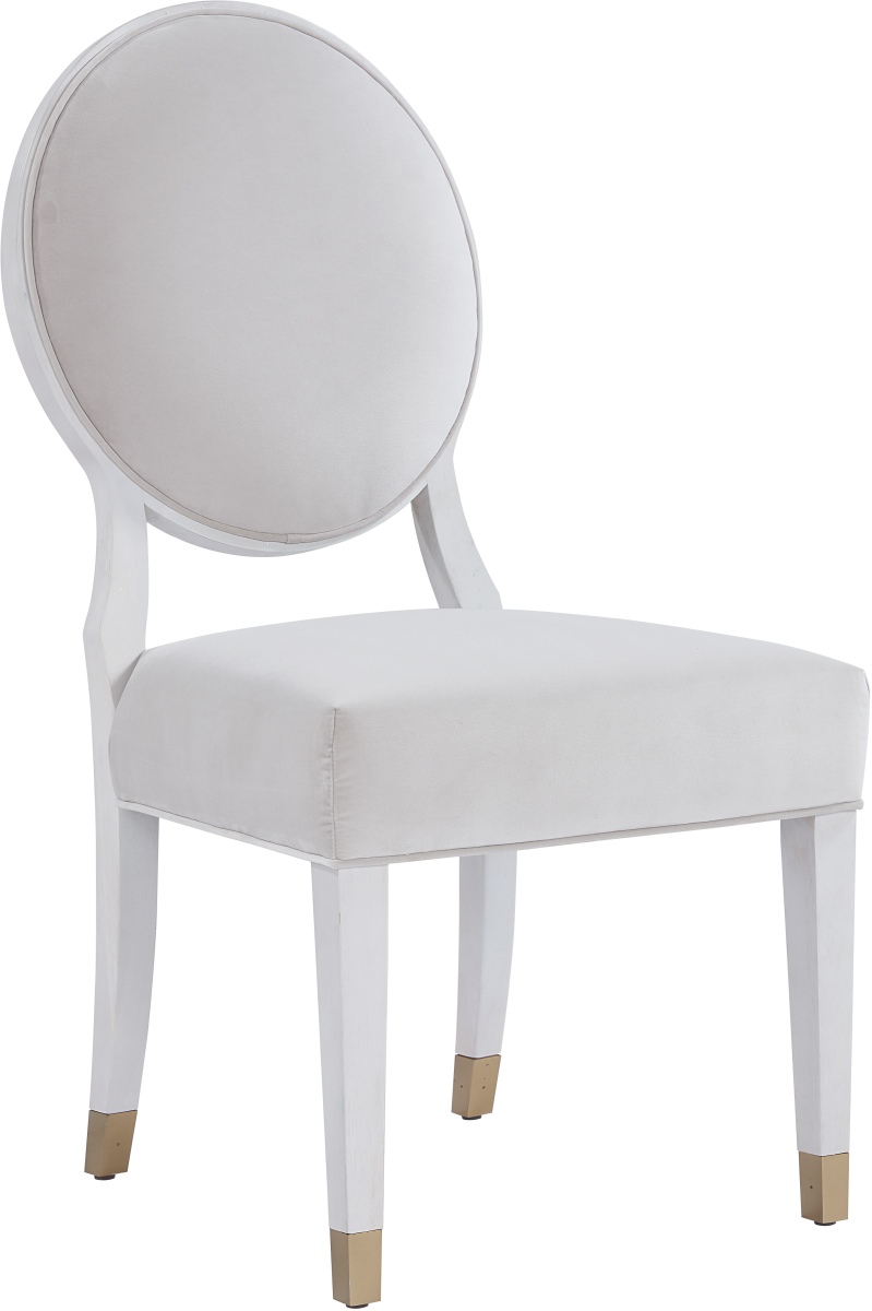 Boasting an exquisite rounded back, an upholstered seat, and soft gold metal caps on each leg, the Love Joy Bliss Oval Side Chair is a luxe seating choice.