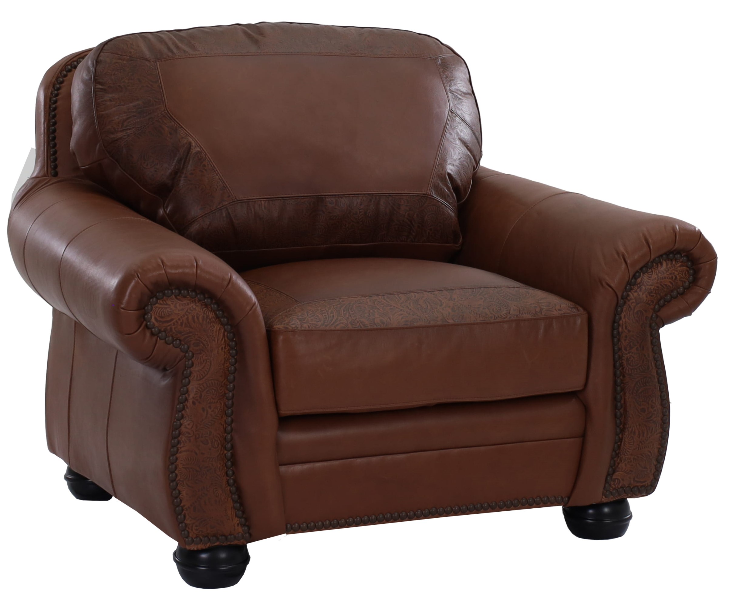 The 7500 features a rolled arm and a high back with paisley embossing on the back pillows, front rail and stump panel. Nailhead trim across the stump panel, back, and front rail completes the look.