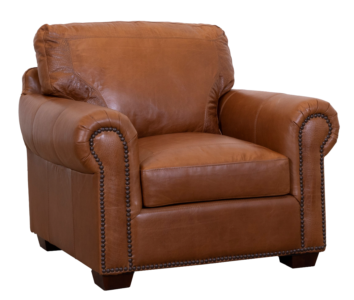 The 4950 features a rounded arm and traditional frame with nailhead trim and gator embossing on the back pillows.