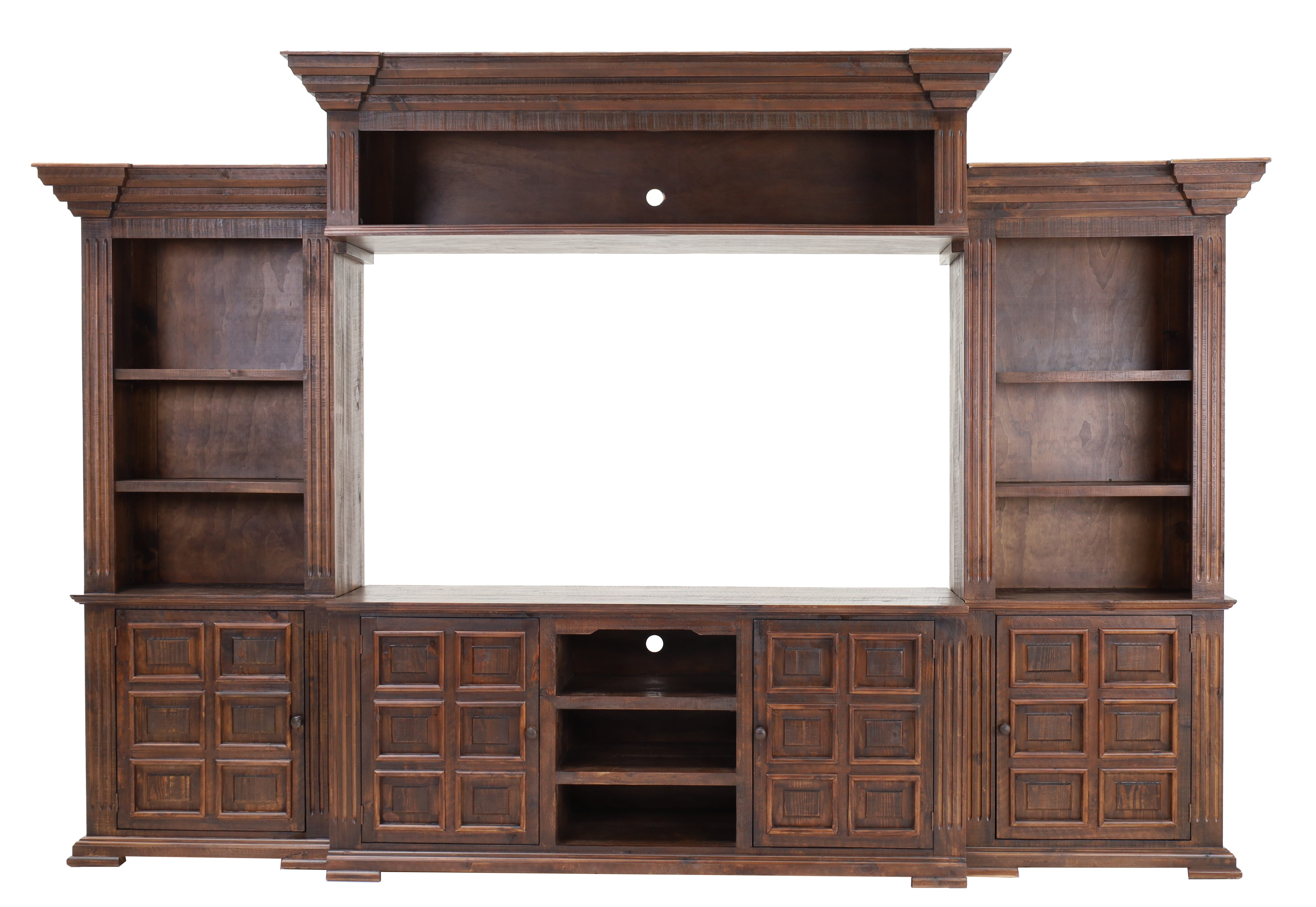 Chalet Walnut 4 Piece Entertainment Wall Unit by Vintage Furniture. Vintage Furniture is handmade of solid wood construction and all hand-finished to create a unique quality look made to the highest standards of craftsmanship.