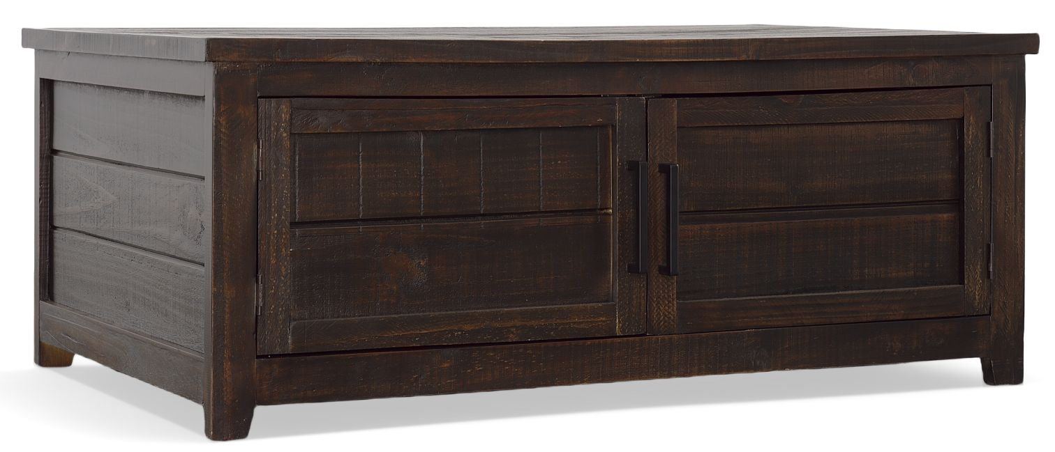 This cocktail table by Vintage Furniture is made of solid wood and is in the Sparrow finish. Vintage Furniture is handmade of solid wood construction and all hand-finished to create a unique quality look made to the highest standards of craftsmanship.