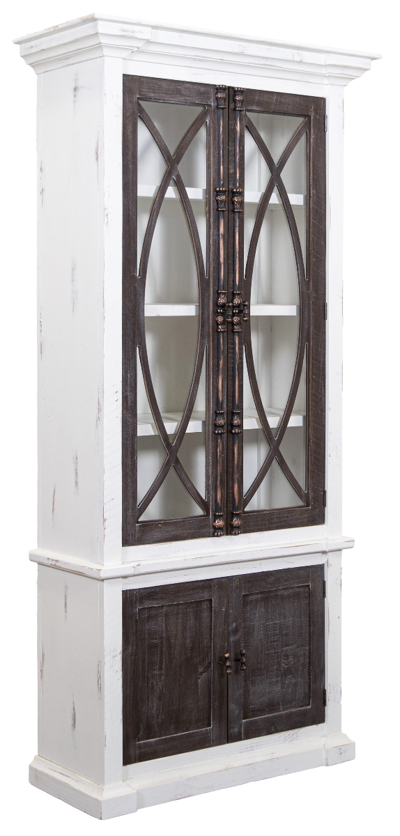 This tall Nash Fish cabinet is the right touch for your home with the fixtures and glass-paned frames. The shelves on top of the lower storage cabinet offer plenty of storage!
