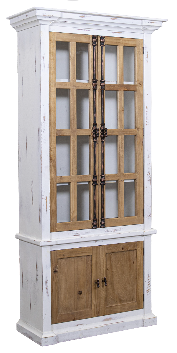 This tall Nero White/Bare Panal vitrine is the right touch for your home with the fixtures and glass-paned frames. The shelves on top of the lower cabinet offer plenty of storage!