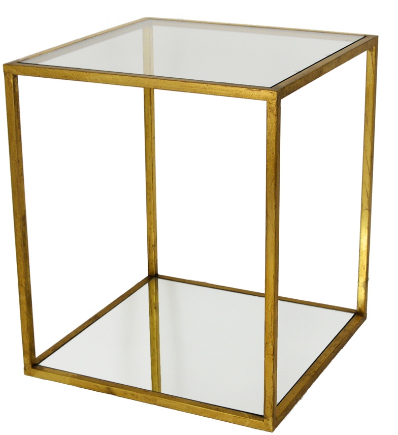 Handmade gold leaf with tempered glass on top and mirror bottom side table.Read More